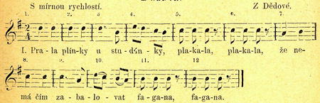 II. Zaviň si ho, má Aničko, do plínek, do plínek, aby se ti nerysmíval tatínek, tatínek.