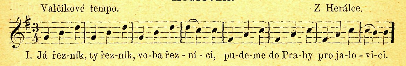 Tento tanec jest znám též z Chlumu a z Holetina. Y Herálci říkají mu „Hoblovák", na čertovině „Pavouk" a také někdy podle písničky „Řezník".
