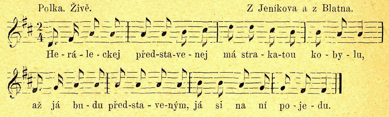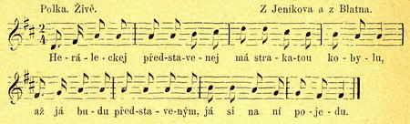 V Jeníkově tanečníkovi, jenž si poručil, aby mu zahráli „H e ráleckýho představenýlio“, spustili muzikanti tento tanec: