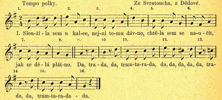 Taktéž, tančí se „Kadlec" ve Rváčově. Počíná se polkou, ale tanečník s tanečnicí tančí v prvých IG taktech, při obyčejne'm držení, do kola polku, pak stanou a vezmou se za ruce křížem a tanči (v 17.—24. taktu) řezanku: