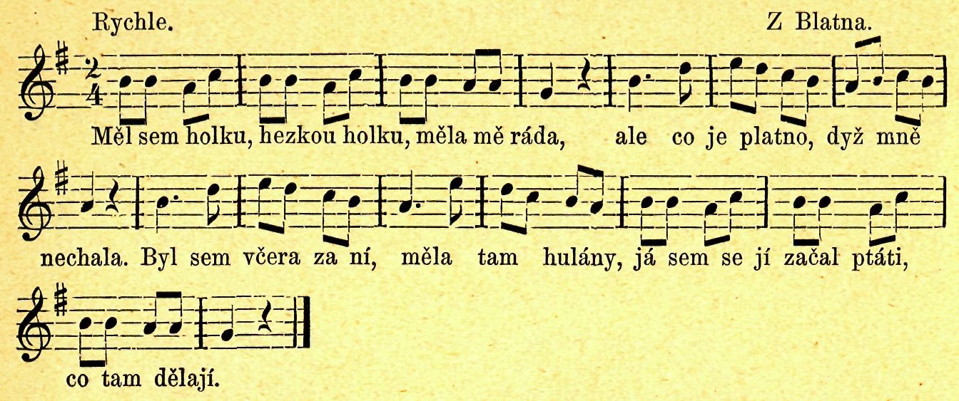 V Chlumu zpívají píseň, patrně te'ž při muzikách hranou, již tuto připojuji: