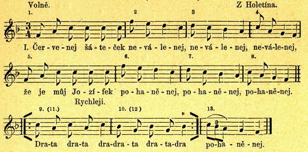 ,. pěkně se toč. Můj milej se hněvá, já nevím, proč, já nevím, proč, dratadratadradratadratadra, já nevím, proč.