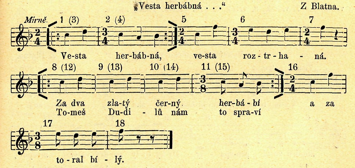 Tanec kolový. 1.—4. polka, 5. tanečník potřese na místě dvakrát levou nohou, tanečnice učiní tak pravou nohou, 6. tanečník pravou nohou, tanečnice levou nohou a 7.-8. pak se oba otočí obkročákem. Tanec znova.