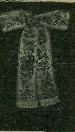 nými a jinými listy a květy ladně vyšívaná Rukávů nenosí spuštěných, ale v nadloktí v baňku stažené bílou tkanicí asi pět prstů od kraje tak, že rukávy činí konci svými pěkný, vkusně vyšitý krejzlíček. Dolní konce „opljeéa" překládají se přes sebe; u krku se „opljeée" zavazuje krátkou bílou tkanicí.