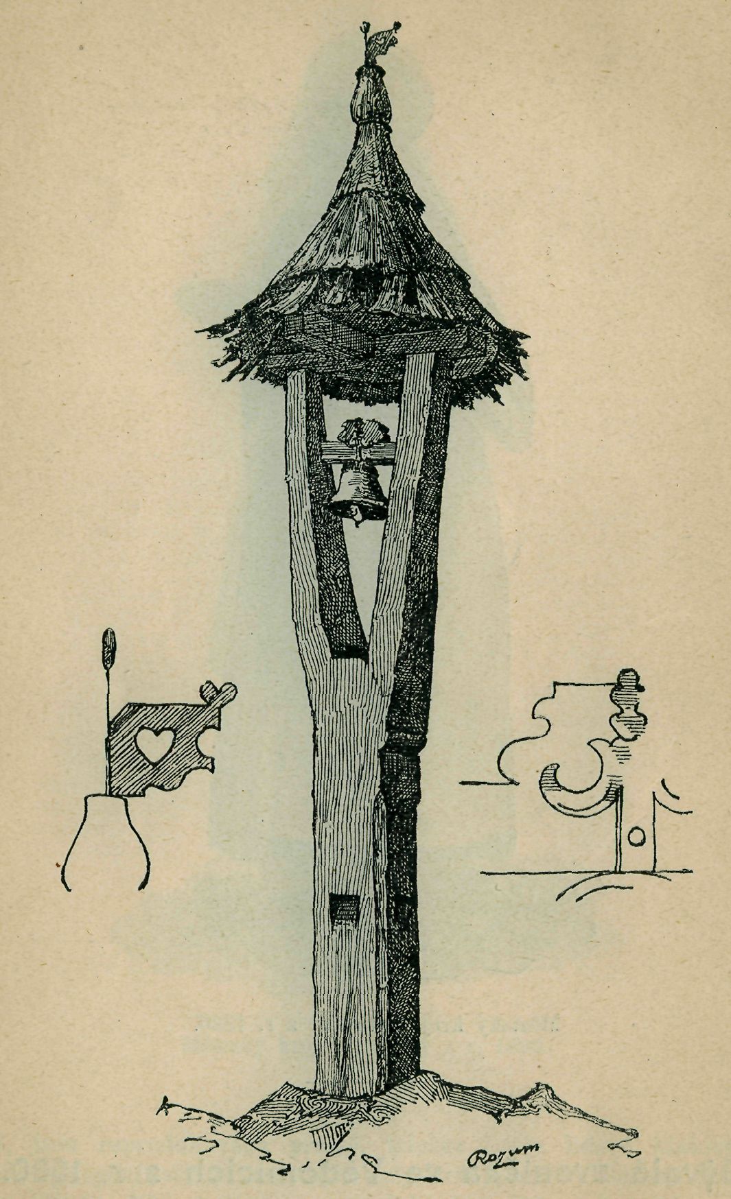 Zvonička (Vědomice) z r. l680. Kresba K. Rozuma.