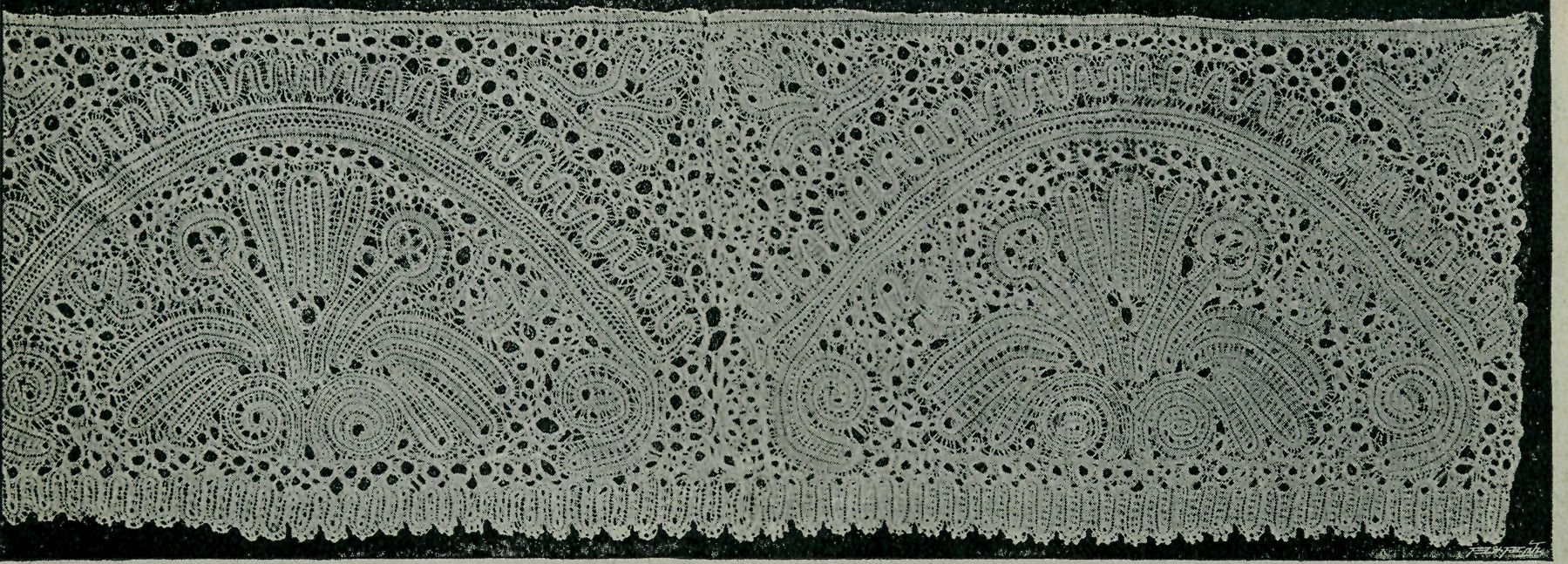 Čís. 11. Krajka k albě. Dar pí. M. Neureutterové biskupu Strossmayerovi. (Provedeno v pražské Městské pokračovací škole průmyslové pro dívky.)i v tomto oboru uměleckého průmyslu. Žel, že příklad P. Hájka ostal dosud téměř ojedinělý. Krásná kasule, jím objednaná, dala ovšem podnět ? skvostnému daru, věnovanému paní M. Neu-reutterovou biskupu Stross-mayerovi. Z daru tohoto přinášíme ukázkou mitru, casuli a též slohové krajky alby a antipendia, zároveň jako ukázku obrození starého krajkářského umění národního. — V chrámech pražských jen sem tam porůznu nalezneme některý předmět národním vyšíváním zdobený — napadá mi jen zasłonka ? tabernaklu u sv. Hašta'a, antependium s jihočeským vzorem u sv. Šlěpána. Před třemi roky objednalo Umělecko-průmyslové museum obchodní a živnostenské lu mory pražské v Průmyslové škole pláštík na ciborium, ? jehož lemu bylo užilo přísně sty-lisovaného ornamentu ze starobylé šaty litomyšlské. Pro rozvoj snažení o obrození lidového vyšívání