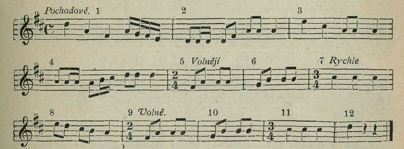 V 1. až 4. taktu při závěsu „špacír", v 5. až 10. taktu valčík.