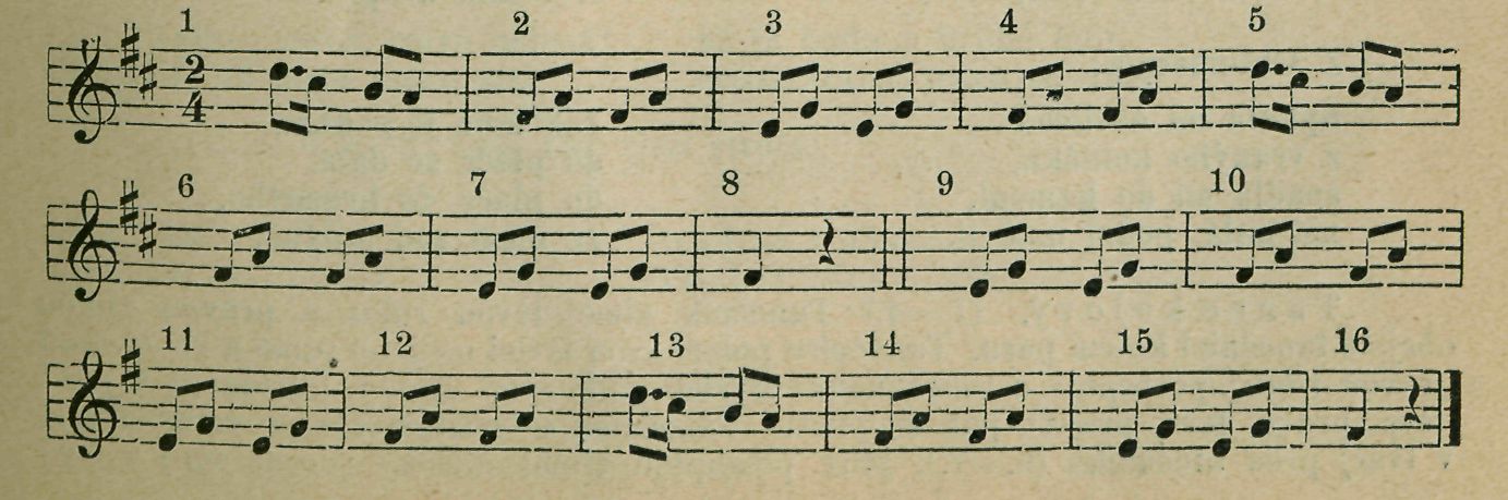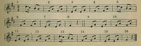 (1.—16.) polku do kola. Po 16 taktech se postaví dvojice čelmo ? sobě a spustí páže a ze stoje spatného po (17.) taktu (18.) třikrát dle taktu nohama za-dupají, (19.) postojí ve spatne'm stoji a (20.) třikrát dle taktu zatleskají a pohrozí si nejprve (21.) ukazováčkem pravým třikrát v taktu a pak (22.) pohrozí si levým ukazováčkem. (23. - 24.) Rychle se otočí na opätku a tančí znova.