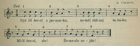 Tanec kolový. (1.—4.) Dvojice tančí, obyčejně se držíce, dokola polku, načež pustí se a (5.-8.) proti sobě poskakují, rukama napodobujíce práci ševcovskou (utahování dratve a j.).