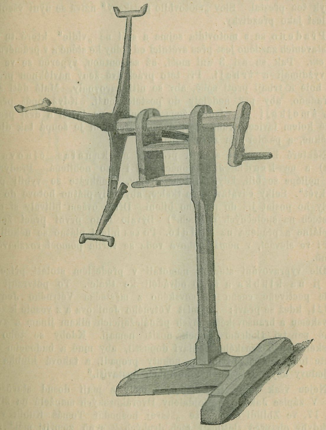 motají se na motovidle (obr. č. 1.) v pradeno. To rozděluje se při motání ouvazky ve čtyři neb osm pásem. Mine-li se při motání r o h motovidla, že nit navinula se jen na tři rohy, jest přímota, která se ovšem trpěti nesmí. Na cívce po motání zbude něco nití — vopředek, ? němuž připřádá se niť nová. V podstavci některých motovidel mívají