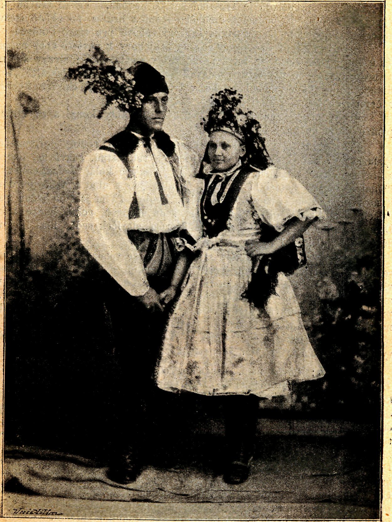 Čís. 1. Ženich s nevěstou. (Fotografie Václava Bartoňe v Uh. Hradišti.)