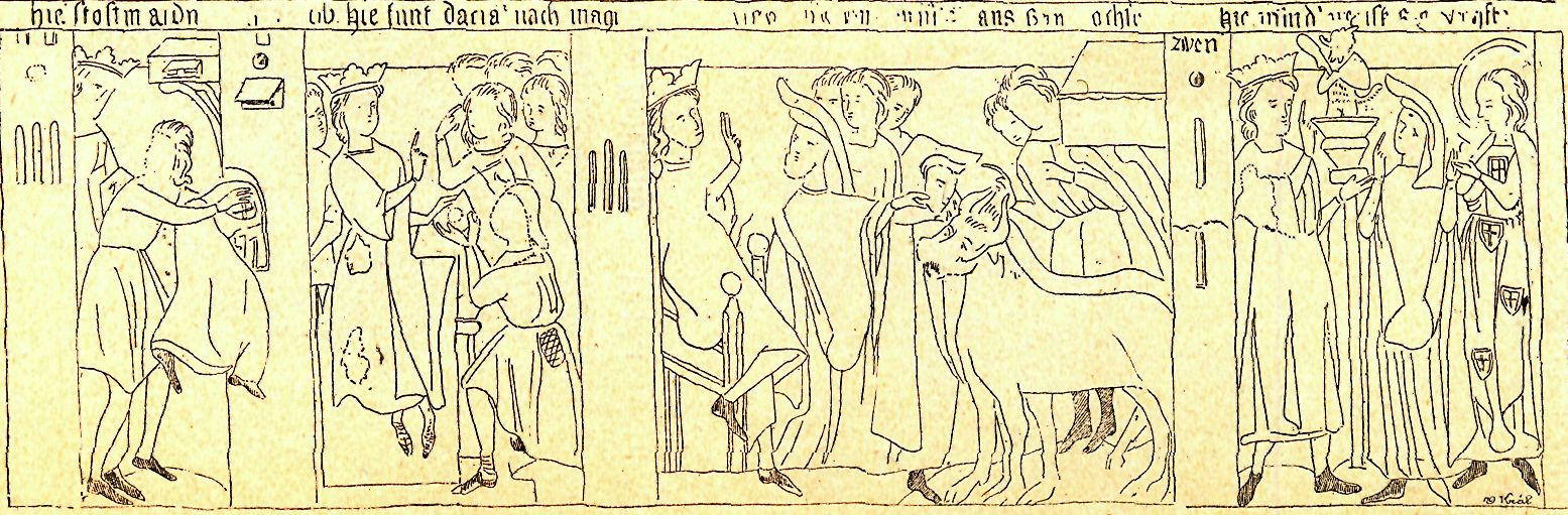 Čís. 3. Ďábel bůžek v nástěnné malbě legendy o sv. Jiří v Jindř. Hradci.