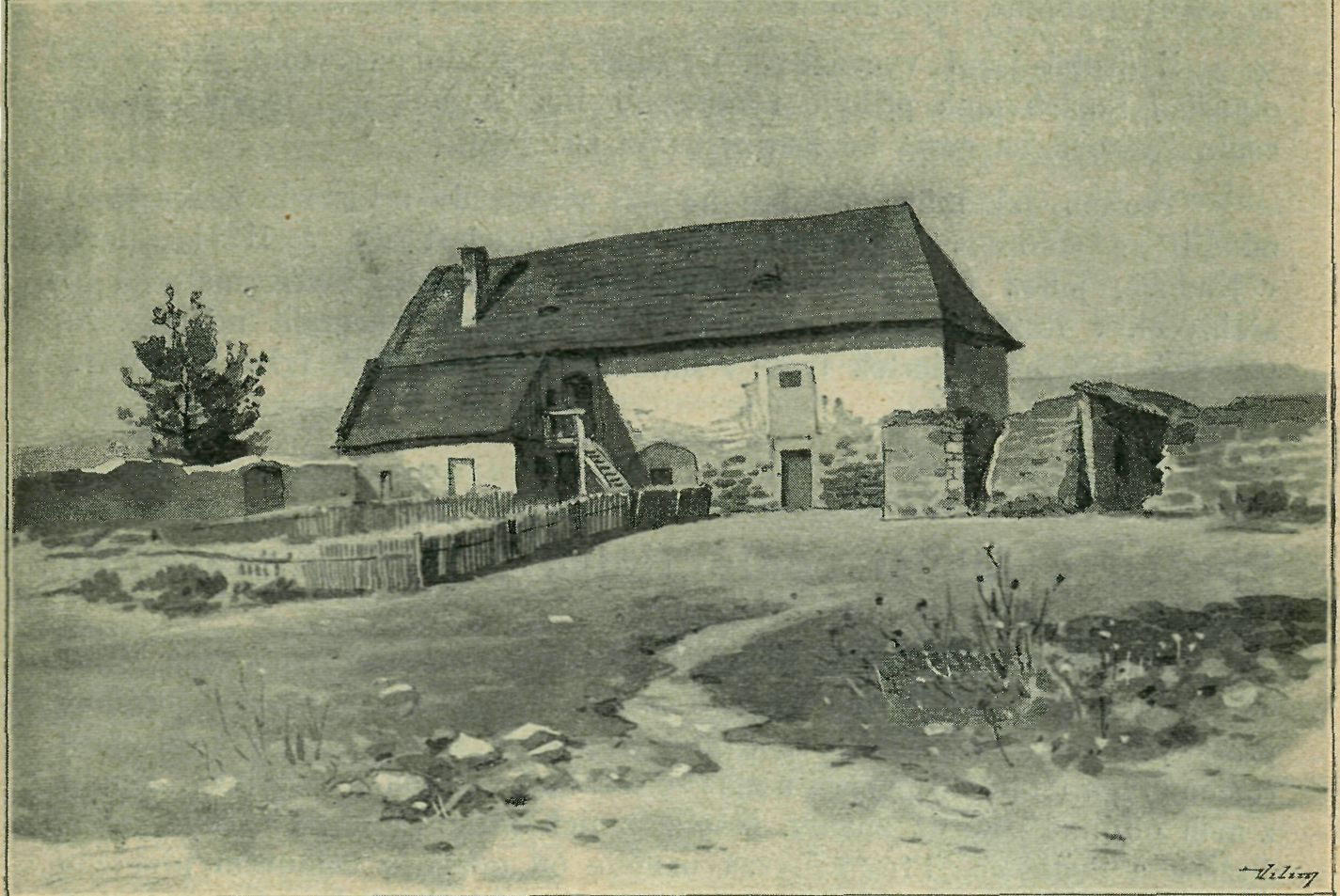 Tvrz v Málkově. (Podle obrazu dp. faráře J. Hille).