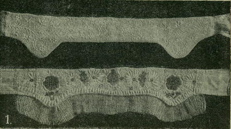 Z jednotlivých vínků zachovaných zlatý a prosté bílé uzlíčkové jsou tak šity, jako čepce téhož druhu; jeden bílý uzlíčkový má květy bavlnkou. podložené přešity nití zlatou; vínek stříbrný s hedvábím černým a vínek žlutým a černým hedvábím vyšity jsou ploše, bez podkládání.