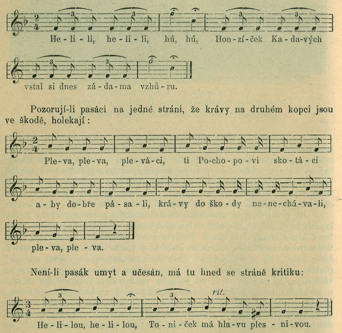 Podzim pro dítky horalů-tkaleů, majících i několik korců polí, zajímavý jest pastvou na chudých strništích a jetelištích na vysokých stráních, později na lukách. Pastva trvá ode žní do sněhu a to v časných hodinách, než se jde do školy a odpoledne po škole. — Krávy honí se na pastvu svobodně, ne na provazu a hlavní chloubou hospodyň: kráva čistá beze skvrny, s lesknoucí se srstí. — časně z rána zvoní to po všech cestách k jednotlivým svahům údolí se táhnoucích harmonickým tlukotem zvonků na krku krav zavěšených, mládež se stráně na stráň zpěvem zdraví se navzájem; pozdravy zpěvné »holekání« mají účel výsměchu, napomenutí ku pozornějšímu pasení atd. Směje-li se pasák svému kamarádu, že jest ještě ospalý a nevrlý, zaholeká: