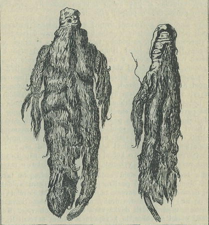 Bylina »Mandragora officinalis« (»mužík«, »strýček«, Alraunpflanze), má dlouhý, silně chloupky porostlý kořen, pravidelně zakončený dvěma výběžky, bílé květy a žlutavé plody. Listy i kůra mají nahořklou chuť,