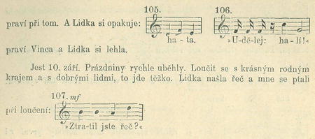1. Odkud je sklo, děti nevěděly. Konečně hlásí se M. Š-ová, děvče opak. 1. tř., 7—8 roků, Polka po matce, povahy velmi živé, po-vídalka, typ sanguinika se rtutí v žilách: »Když pánbíček udělal svět, udělal také sklo.«