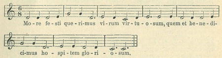 Rukopis Vyšehradský fol. 63a má též koledu »More festi querimus« (viz ji v 2. čísle t. ročníku), ale se zajímavou změnou v nápěvu :