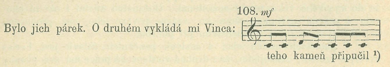 Nám mnohé a mnohé projevuje, povídá jediným slovem, ale mění se nápěvek toho slova tak, že snadno odlišujeme, prosí-li jím, volá-li jím, stěžuje-li si jím; obzvláště celou stupnici chtění — od chtění s pláčem přes všední chtění neurčitě zabarvené citově — slyšíme a rozeznáme toliko na nápěvku toho slova. Nápěvek tento jest tudíž podstatnou částí těchto úsečných, »projádřených vět«. Skladatelům hudebním třeba si všímat