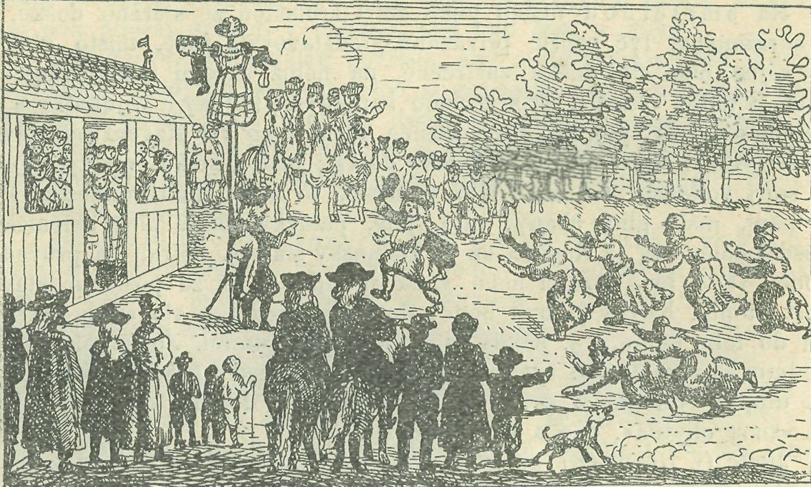 Vratislavské ženy běhají o závod. Rytina z. r. 1735
