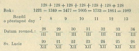 Na základě uvedené tabulky vidíme nejprve, že v zemích, majících kalendář pravoslavný, pořekadlo »Lucie, noci upije« jest správné, i upije tím více nocí, čím vyšší je absolutní hodnota letopočtu dle kalendáře Julianského.