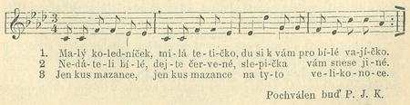 Maria se zjevila u studánky živé, kdež se říká u Boží vody u Benešova na Berounsku. Na tomto místě nepochybně se vykonávala služba poh. Ladě bohyni plodnosti a zdravoty.