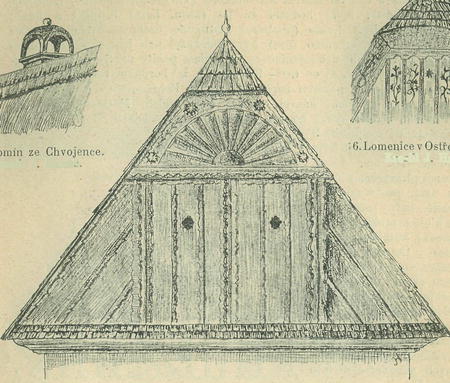 Jak vybito bylo horní a dolní bednění řezanicemi, více neb méně ozdobnými, záleželo na krasochuti budovatelů, jak ukazují vyobrazení. Lomenice vsí při Labi mají v horním bednění středovou ozdobu. V horním a dolním bednění porůzně vyřezány jsou ďoury (světlíky) ku osvětlování hůry; obrys jich jest obdélník, kružnice, ellipsa, vocasatiee (ve způsobu s), kříž, kalich. Na kukle, vyčnívající nad celou lomenicí, trčí makovice, plechový kohoutek (Veliny, Lhota, Semín) neb vrzátko s praporem neb hvězdou. Makovice má špici, báň a sedlo, velká bývá 23 coulů (61 cm.) a tvaru rozmanitého. Když se makovička přibíjela, dán byl pod sedlo peníz dle zámožnosti budovatele, rejnský neb tolar, aby hrom byl zaplacen. Hojně makoviček luzných jest v Holicích; nékleré mají na