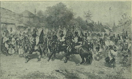 kroje a typy moravské (str. 288.). Sem řadíme hned dětský genre s motivem podobným: děti si hrají na processí, napodobujíce zbožný průvod, zpěváky a pod. (str. 289.). V III. a V. ročníku Č. L. upozornil redaktor na starodávný obřad při jízdě králů na letnice i pokusil se objasniti původ a význam těchto obchůzek svatodušních. Vyobrazením na str. 289. vystihl J. Úprka čtveračivý ruch šohajů, vystrojených k jízdě králů, ověšených fábory, kyticemi, praporci, s celou družinou, na bujných koních. Také