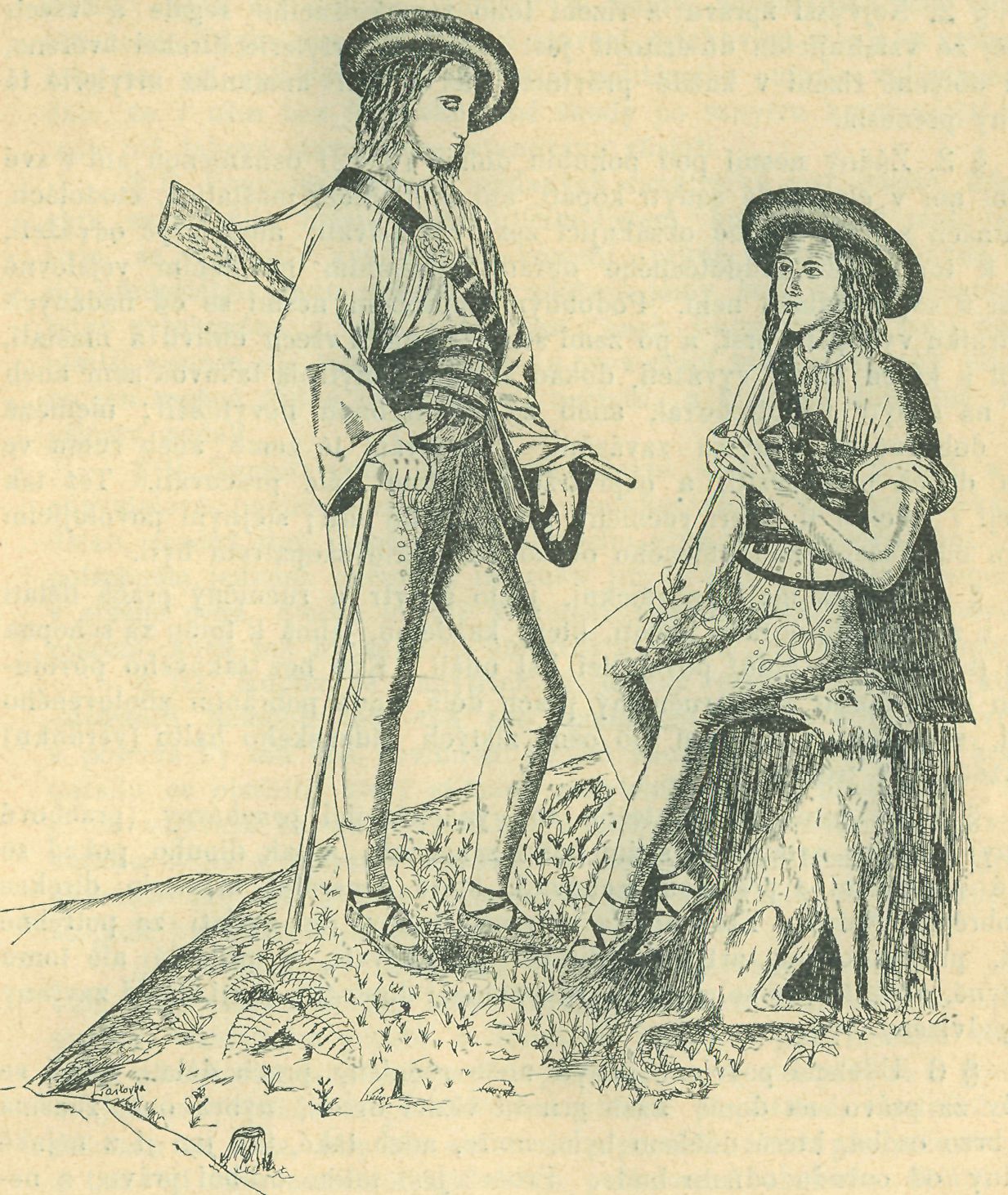 Bača a hájnik z pod Oravskjeho zámku. Kreslil Zdeněk Laštovka.