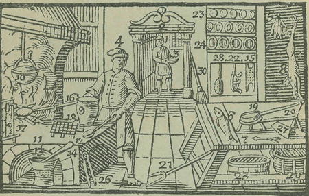 Č. 5. V kuchyni staročeské za věku XVII. Rytina podle návodu Jana Amosa Komenského.