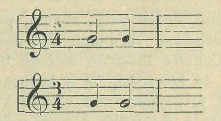 Pravím výslovně: rythmus; neboť nejde nám o melodii, ponejvíce v osminách dle slabik článkovanou. Takto byly by tedy na př. notovány bicí nástroje (na př. buben, triangl, též podupy a tleskání rukama) zpěv doprovázející. Každému hudebníku jest patrno, že změnily se tyto dva takty tří-osminové v jeden tříčtvrtní, tedy