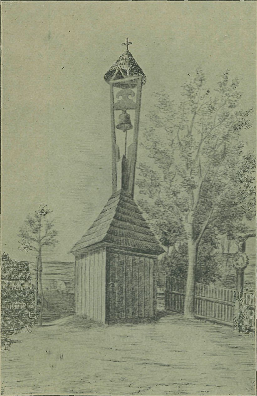 Spisovatel seznamuje nejdříve s celkovým rázem vesnic a měst. Upozorňuje zvláště na zvoničky. Jsou to většinou pouhé trámy nahoře rozvětvené a stříškou opatřené; někdy je celá zvonička zhotovena z kusu jediného. V Nové vsi (viz obr. č. 1) a Vejso-níně visí zvonek prostě na lípě. Nejstarší dřevěná zvonice na Nasavrcku je v Boj anově ; pochází z roku 1730 a je stavbou svou velice karakteristická a velmi cenná. Rovněž pěkné, avšak mladší dřevěné zvonice mají v Krásnu, Javorném a Možděnicích (obr. č. 2). Ve Švihově je zvonice zděná z konce 18. století se starobylou vazbou a věžičkou; roku 1899 byla však plechovým krytem úplně znesvářena. Jí podobná je úhledná kaplička v Mířeticíeh. 0-statní zvonice a kaple na Nasavrcku jsou pů-