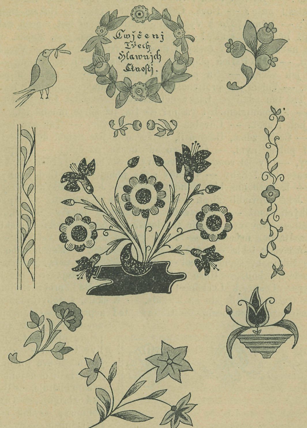 Č. 43.—51. Motivy z psaných knih modlitebních. Kreslil Ot. Svoboda.