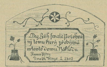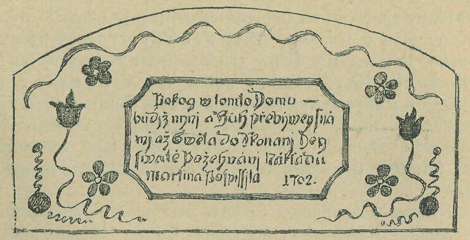 (Kočí), často květovaných (Vorel), nebo i z tašek (Bořice, Gankovice, Bližňovice, Skalice) s kranclemi. Dříve vytápěla se ze síně. V kamnech je trouba plechová nebo hliněná (svratecká) a měděnec (kamnovec, kotel,Řestoky, Klešice). Do kutlochu (pekelce) ukládá^ se dříví na