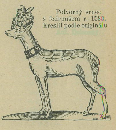 Potvorný srnecs fedrpušem r. 1580. Kreslil podle originálu Ant. Dolenský.