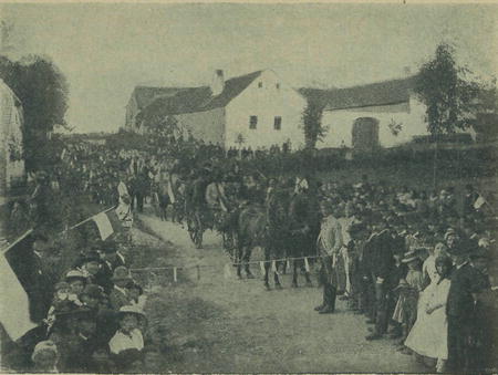 Mezi žertovné obřady svatební patří ode dávna zalikování, zatahování cesty svatebčanům. Průvodu svatebnímu přetáhnou přes cestu provaz s praporečky, pentličkami a chce-li jeti dále, musí se ženich smlouvati o výkupné, musí tlampač, řečník řečniti, že nic zlého neprovedli, že jen vezou hospodyni hospodáři atd. a konec konců vysázeti pěkné zpropitné těm, kdo zatáhli cestu. Viz podrobnosti o tomto obřadu i výklad Zíbrt, Listy z Českých dějin kulturních, v Praze, 1891, se všemi podrobnostmi. Neznáme v literatuře české posavad tak názorný a původní obrázek, jako naše vyobrazení ze svatby v Plassku u Jindř. Hradce. U provazu stojí »hlídač«, s dlouhým šosatým kabátem a s vojenskou čepicí na hlavě. Veselá nálada zračí se na tvářích zalikovaných svatebčanů. Jen trochu řeči, škádlení, na dlaň pár zlafáků a provaz se přesekne i průvod pojede za muziky a zpěvu dále k ženichovu domovu. Č. Z.