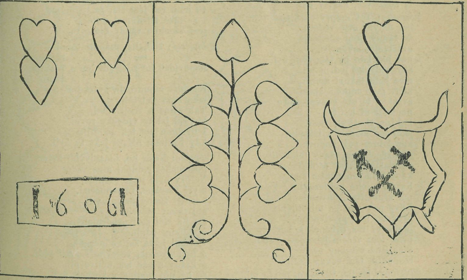 Č. 20—22. Karty z Černé věže na Hradě Pražském. Podle orig. kreslil A. Gareis a Fr. Chalupa.