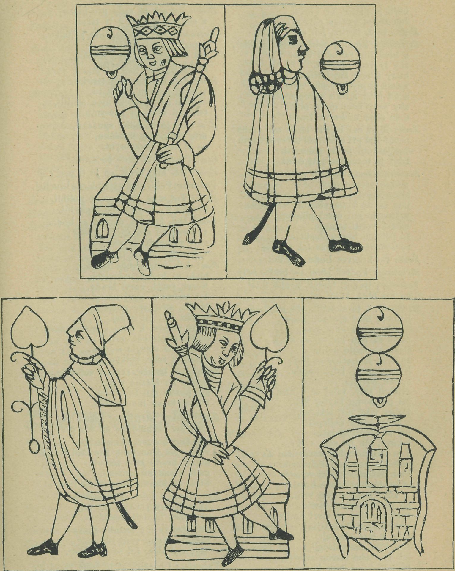Č. 28-32. Karty z Černé věže na Hradě Pražském. Podle orig. kreslil A. Gareis a Fr. Chalupa.