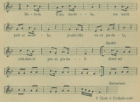 zachovávajíce při tom postavení »bočné«, honí se kolem řad. Hudba stále opakuje to, co v repeticích označeno, tak dlouho, dokud tančící se nechytí. Stane-li se tak, hrají zakončení a tančící pár postaví se na druhý konec řad, při čemž celé řady posunou se o jedno místo k hudbě blíže. Totéž tančí ostatní páry, až se všichni vystřídají. Ke konci, jelikož všichni dosti dlouho stáli a byli v nebezpečí, že jim nohy stuhnou, tančí rychlou polku několikráte do kola. Tím dostalo se příliš tance chtivým náhrady nějaké za bývalou trpělivost a nečinnost.