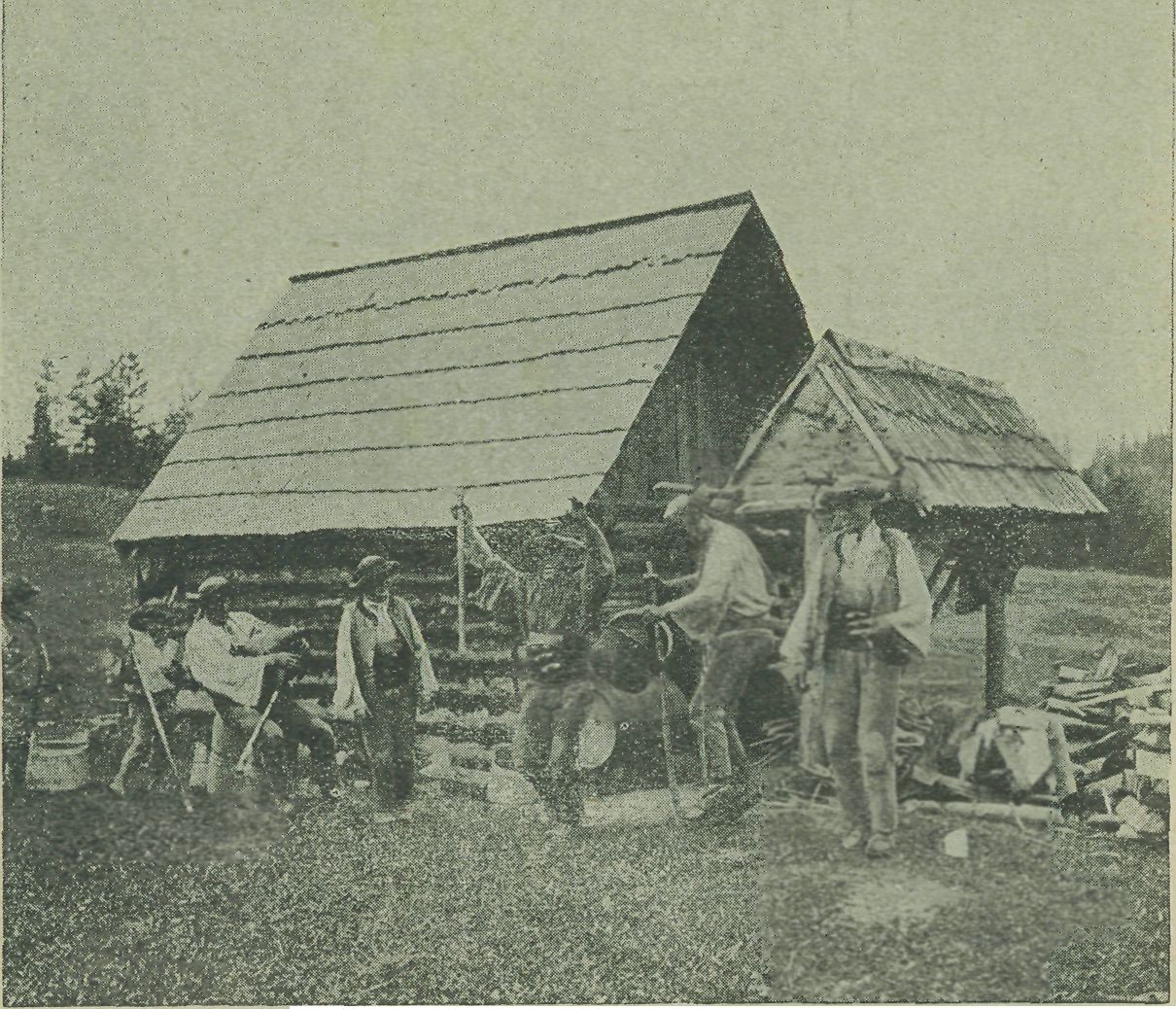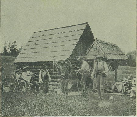 1. Gajdoš (dudák) a tanec »odzemek« na salaši ve Važci (Liptov).