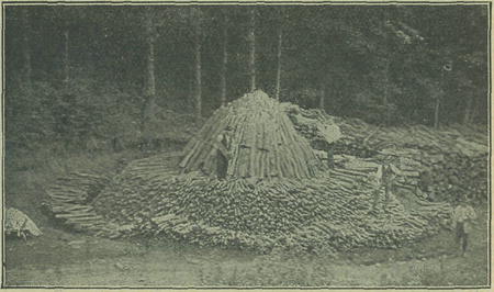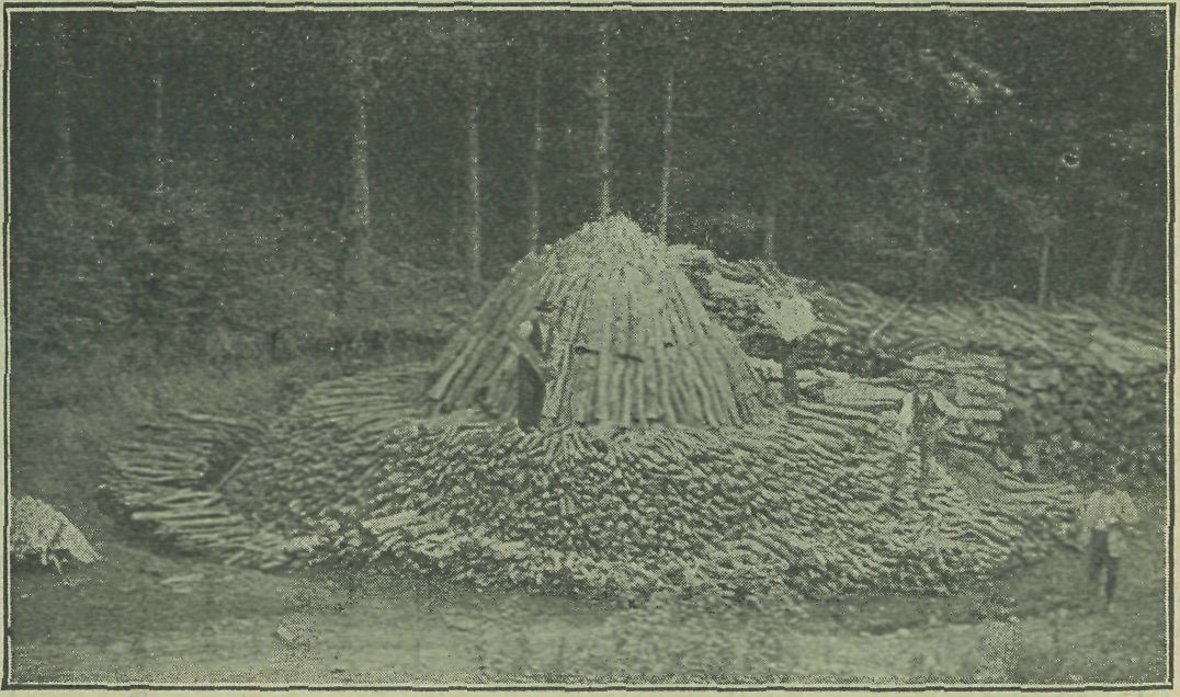 Valašský milíř z Dinotic u Halenková v okresu vsackém. Fotografoval Ph. Mag. K. Puszkailer, lékárník na Vsetíně.