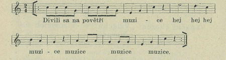 Vešli do světnice, začali ihned zpívati. Prvý začne Bača:
