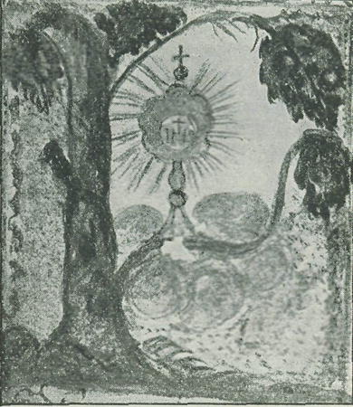 douč vedle písmeny touž postavičku s hradem. Zde ovšem, postrádá věc onoho pěkného motivu, hocha na měsíc pohlížejícího. Tímto byla všechna místa iniciálám vyhrazená vyplněna, mimo jediné, jež prázdným zůstává.