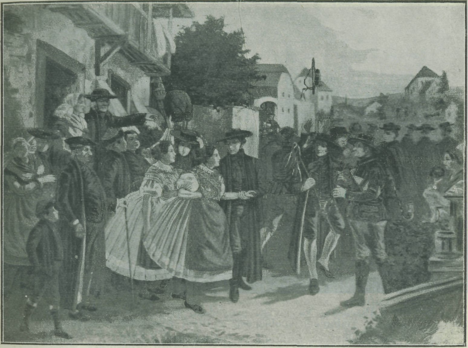Svatba z Pecháčkovic (Kalikovského) mlýna roku 1847 na Plzeňsku. Podle olejomalby Václava Kroupy v Národopisném museu Plzeňska. (K otištění svolil pan ředitel Národopisného musea v Plzni Ladislav Lábek.)