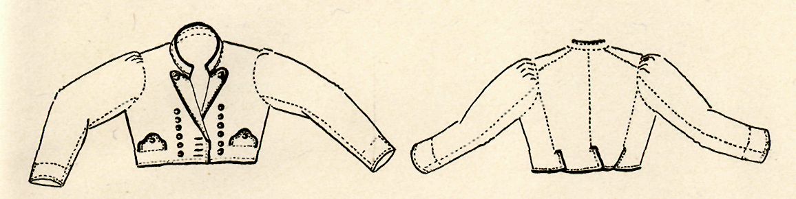Obr. 13. Součásti krojů s vyznačením střihu. Kabáty: 1. a), b) Ženský „lajbl" ze Spytihněvu u Napajedel,