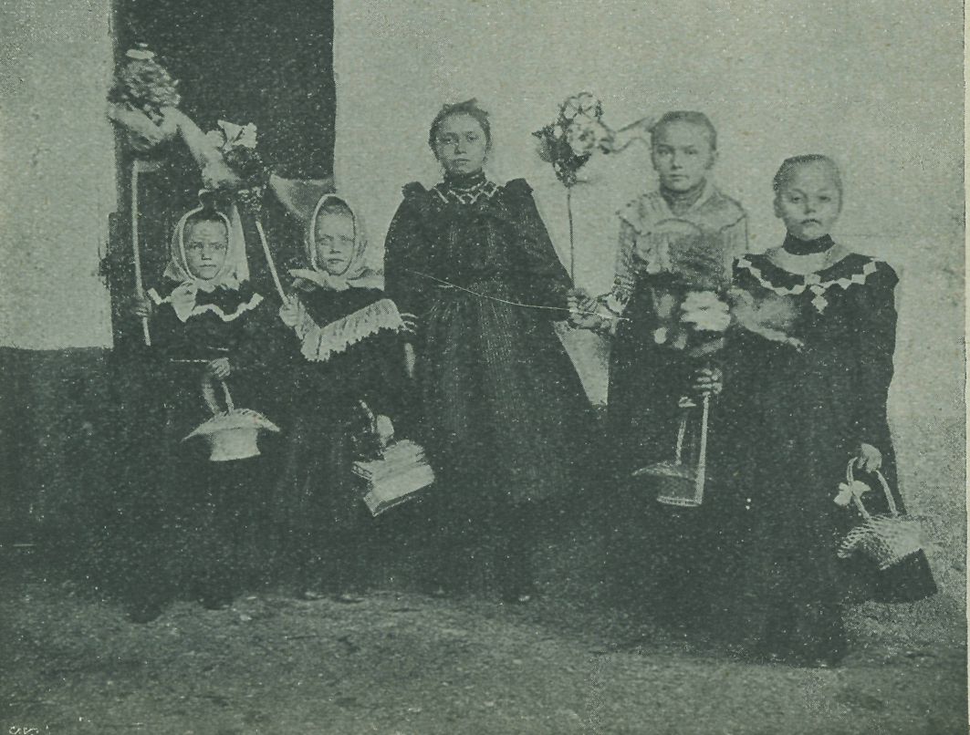 Obr. 13. Děvčata s »kyselem« na kvčtnou neděli v Bochoři na Moravě.