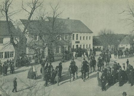 Obr. 120. Velikonoční jízda v Lužici. (Slezská >jízda za Bohem«.)