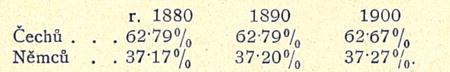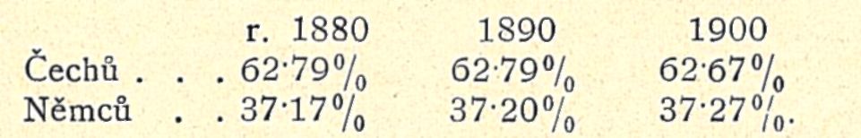 Poměry tedy valně se nezměnily, toliko v posledním desítiletí lze po-zorovati nepatrný úbytek české kvóty ve prospěch kvóty německé.