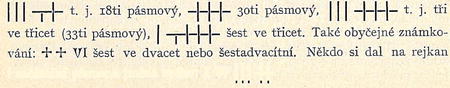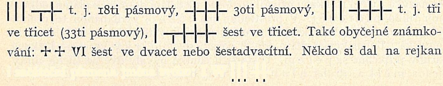 V Litomyšli na trhu bývaly úhledné rejkany z lípového dřeva po 40 kr. r. č. Na hřbetě svrcholce mívaly číslo pásem v takovémto označení: