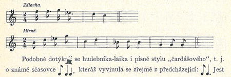 velká příbuznost obou, vztah jejich pak příliš úzký: nelze tudíž po-chybovati o původu slovenském! A čardáš?!***) Charakteristický právě typem té sčasovky!? Jest to tanec slovenský, ni-